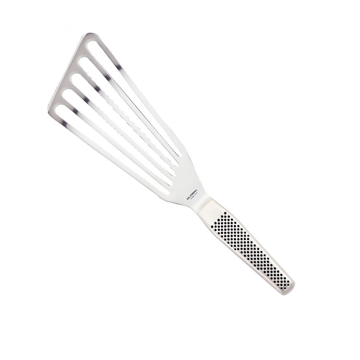 Global’s 7 inch fish turner is angled and slotted to flip what you fry. The slots keep drippings in the pan, while the angle and fanned width of the blade are ideal for the task of turning food. – GS-27 – 4 – B123-3