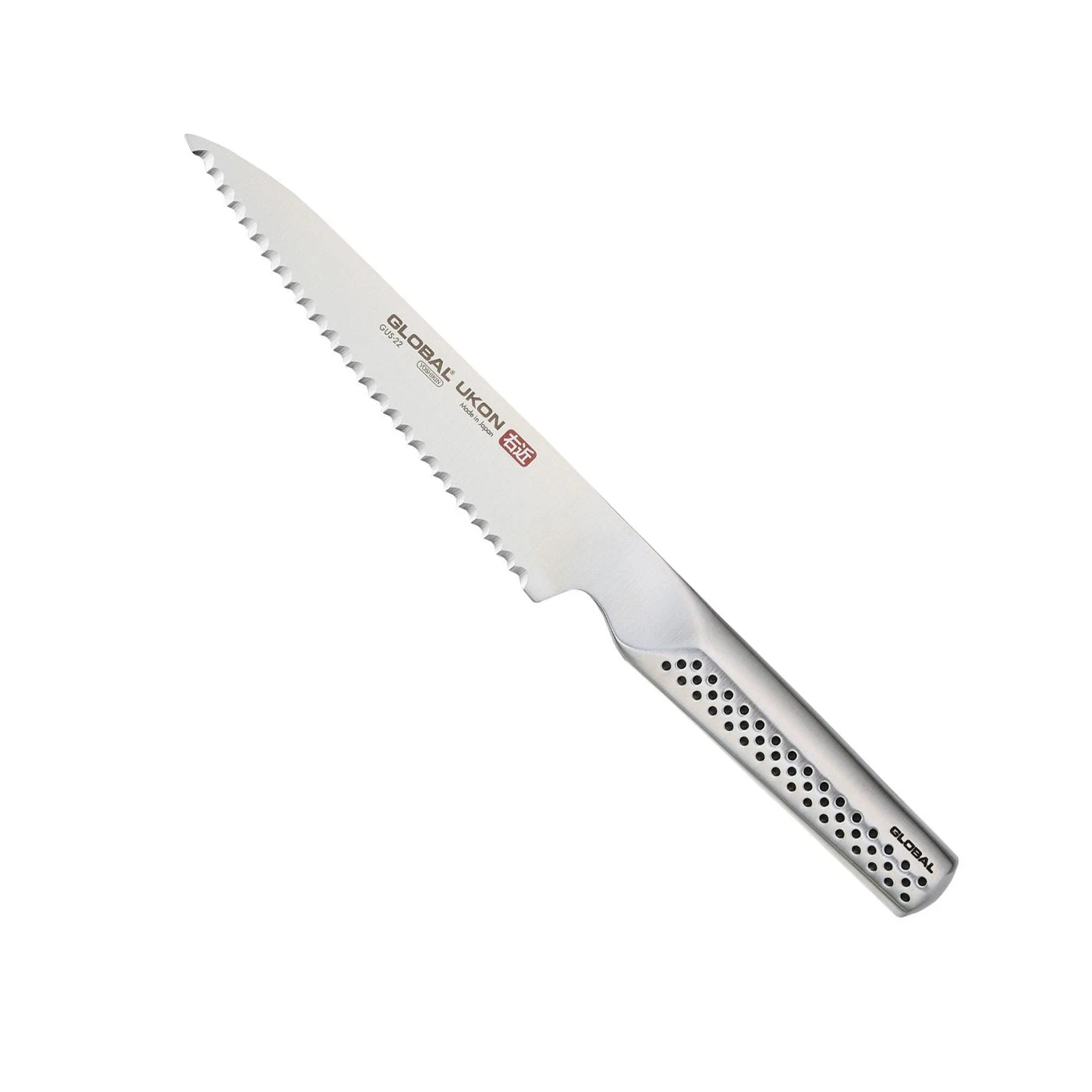 Versatile, smaller serrated knife for slicing, mincing and prep work. The utility knife is between a chef’s knife and paring knife in size. A great multipurpose knife for fruits, vegetables with fine skins or soft insides. Ideal knife for slicing salami, sausage, avocados and small soft or hard-crusted bread.