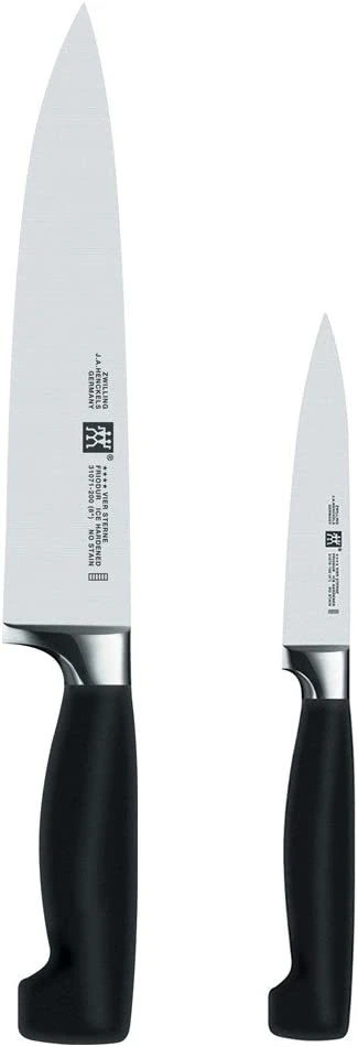 FOUR STAR is the top-selling knife series of ZWILLING J.A. Henckels worldwide. Honed and hand-finished by the most skilled artisans, this celebrated collection is the model of safety, ergonomics, and comfort. Thanks to their seamless transition from bolster to handle, the knives are comfortable to use for long periods of time. The bolster provides the right balance while acting as a safe finger guard. The knives are made of proprietary special formula steel that has been perfected for over 280 years. Combined with ZWILLING’s signature ice-hardening technique, these FRIODUR blades are harder, sharper, they will NOT STAIN or chip and they retain their sharpness longer. Precision-forged from a single piece of steel, the SIGMAFORGE knives have an exceptionally sturdy, balanced and flexible blade. – 35175-000 – 2 – A59-1