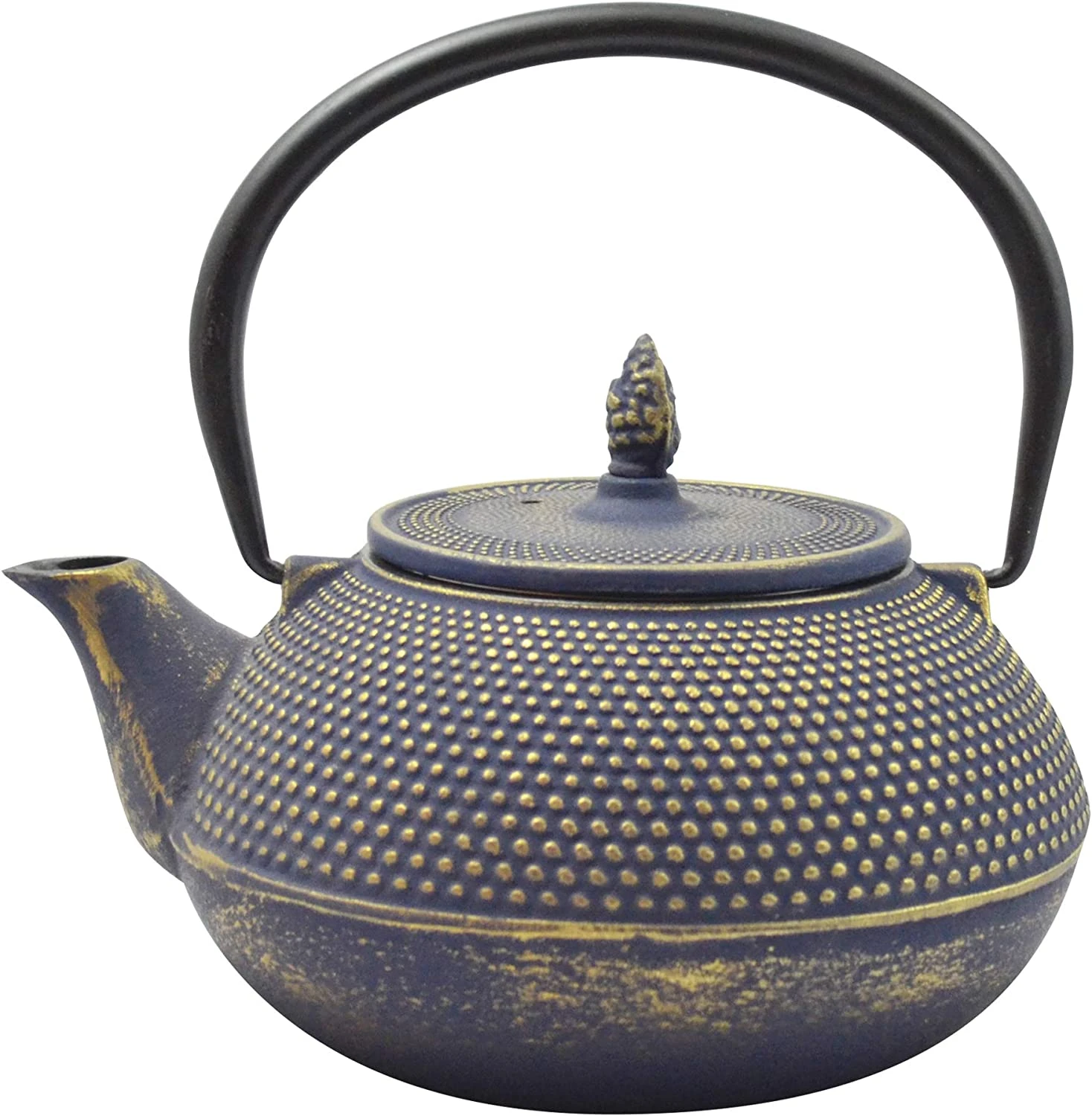 Ja By Frieling Arare Cast Iron Teapot With Stainless Steel Infuser 40 Oz – Blue/Gold
