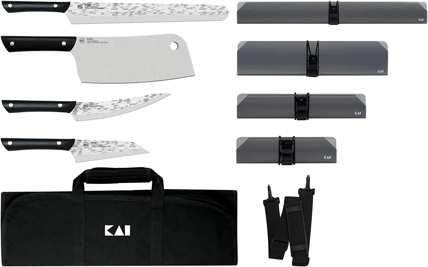 The PRO BBQ Set features four key tools you will need for grilled meats of all types, from prime rib to poultry. The cleaver handles larger cuts of bone-in meat. The PRO Asian Multi-Prep breaks down poultry quickly, then doubles as a general prep knife for grilled vegetables and sauce ingredients. The boning/fillet knife gets in close to the bone to make your task easy. For perfect, mouth-watering slices, the PRO Slicing/Brisket Knife is there for you. The PRO BBQ Set also includes blade guards for each knife and a handsome knife roll that makes it easy to take your tools with you wherever your BBQ adventures take you.