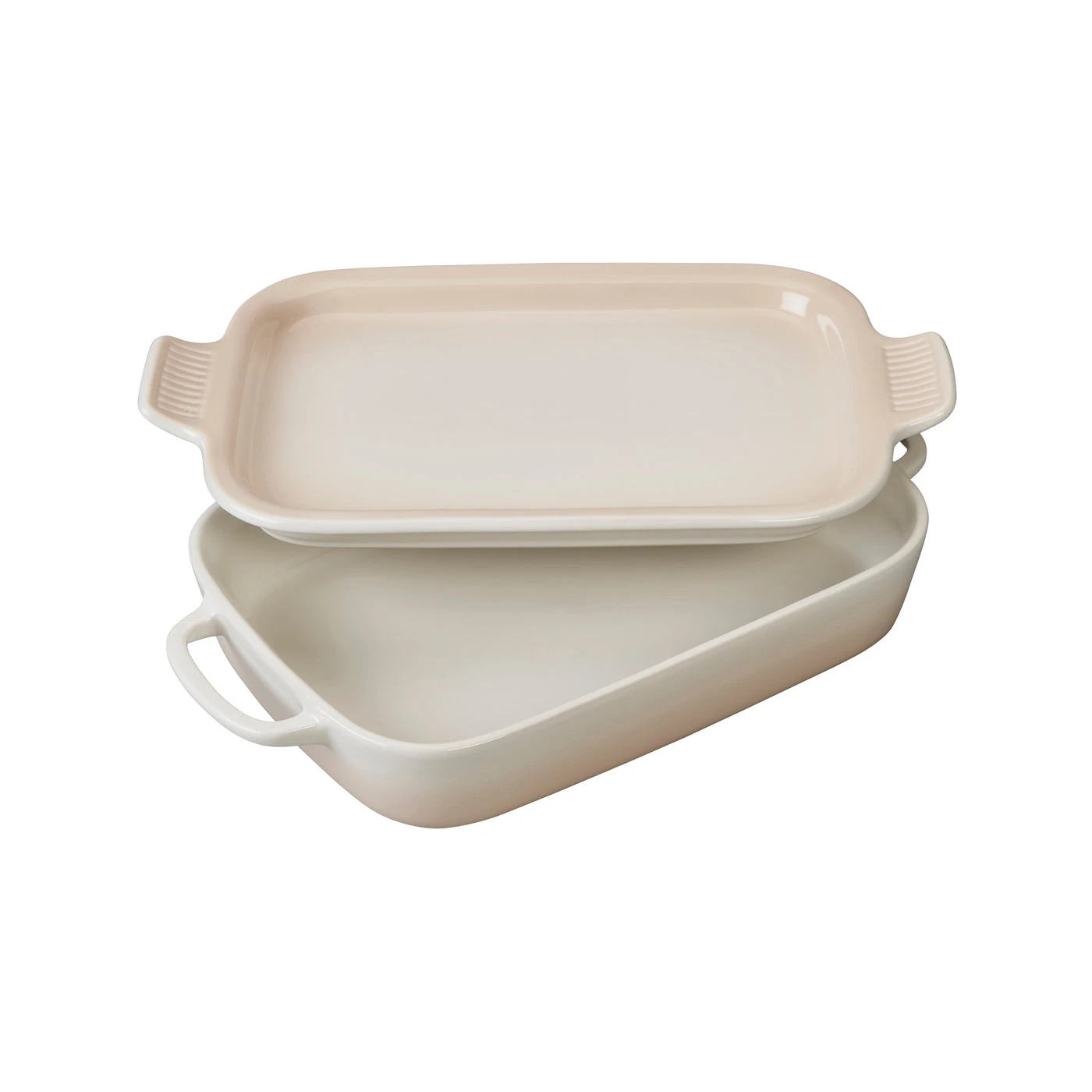 Le Creuset 2 3/4 Qt. (14 3/4″ X 9″ X 2 1/2″) Rectangular Dish W/Platter Lid – Meringue