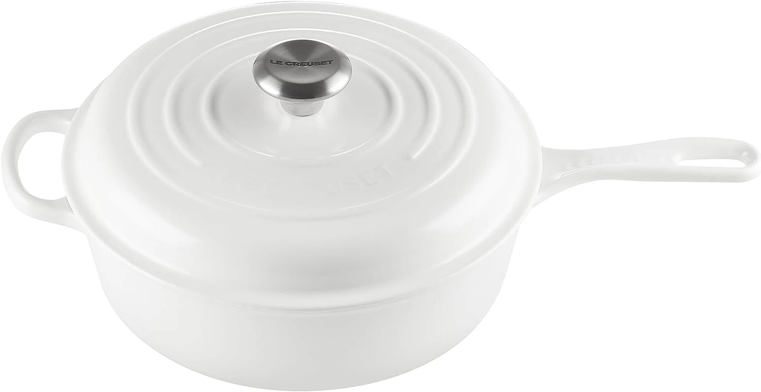 Le Creuset 3 3/4 Qt. Signature Enameled Cast Iron Cassadou W/Stainless Steel Knob – White