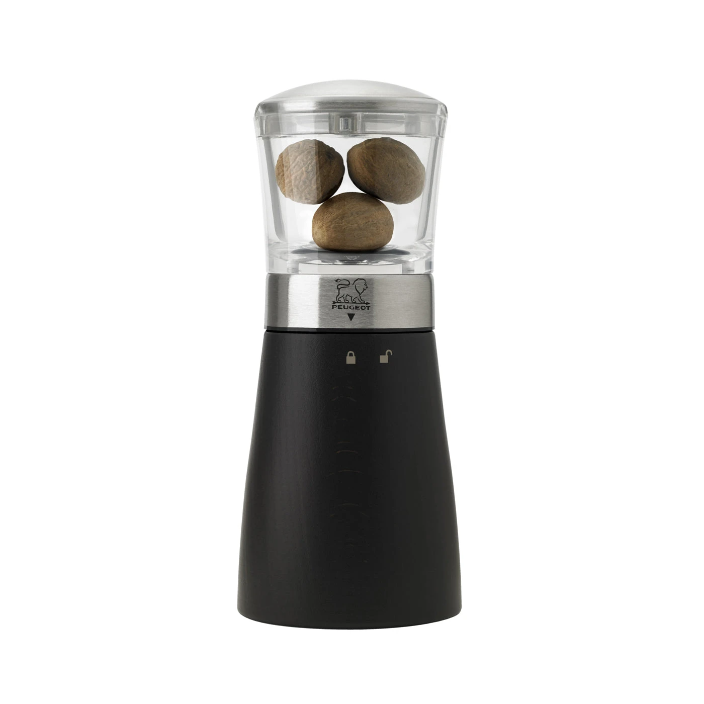 Instantly identifiable by its combination of wood, stainless steel and acrylic, this highly practical nutmeg mill allows for fine grating with no risk to your fingers. The great chefs and cooking enthusiasts know the truth: nothing is better than a pinch of freshly ground nutmeg to subtly enhance a sweet or savoury dish. The Peugeot Madras nutmeg mill is the perfect utensil to bring out the flavours of nutmeg with a simple twist of the hand. This ingenious tool is equipped with a powerful claw and a double blade and grater rotating at the same time, able to deal with even the hardest nutmeg. With this practical tool always within reach, your fingers will thank you. With a twist of the hand, the nutmeg is finely ground and its delicate fragrant aroma released. It has an easily accessible reservoir that can hold 3 nutmegs. The design combines the modernity of stainless steel and acrylic with the warmth of turned wood. Set it next to the Madras salt and pepper mills to form an irreplaceable trio. – 33095 – 4 – B100-1