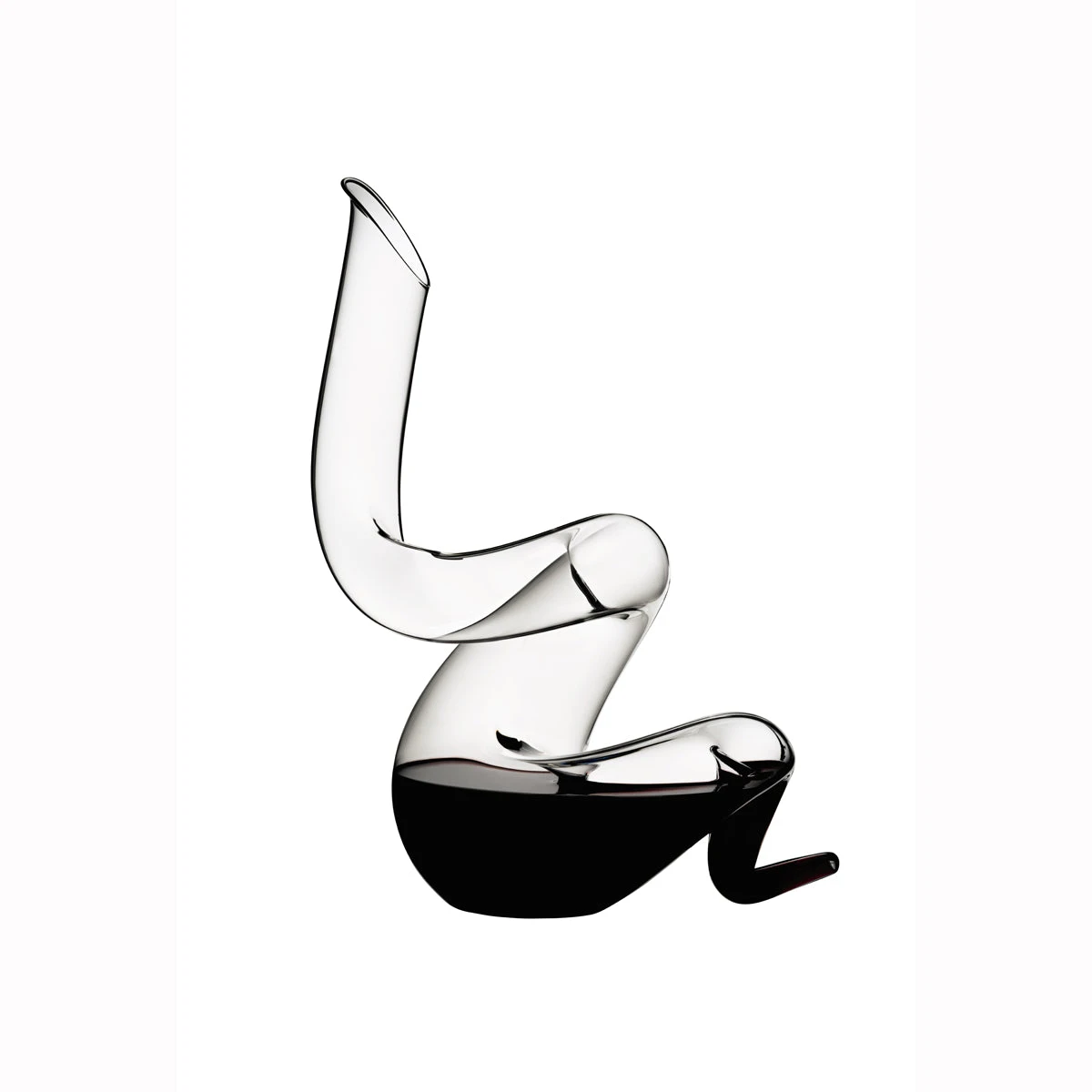 New from Riedel, Boa decanter. Introduced for the Chinese Year of the Snake, this sleek decanter takes Riedel’s elegant serpentine vessels in a new design direction. Consisting entirely of tight coils, the Boa double-decants, “opening up” wine in mere seconds. – 2013/01 – 2 – C51