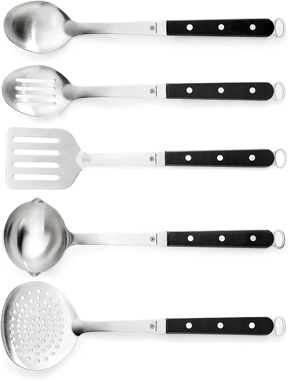 The slotted spatula is ideal for turning, serving, and draining liquids or fats away from food.